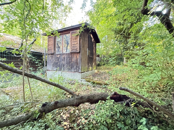 - Großzügiges Wohnzimmer (ca. 30 m²) mit offenem Kamin und Zugang zur Terrasse (ca. 8 m²) und dem ca. 100 m² großen Garten (Hanglage mit Terrassen) sowie Holzhütte